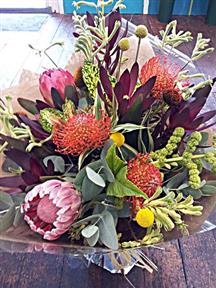 Received a request all the way from Sydney for an Australian themed bouquet. Kangaroo paw a must along with protea, leucosperum and silver grey eucalyptus foliage. This was a special request to remind the recipient of her home and the types of flowers she was used to. You know it's pretty damn marvelous that we can get just about anything on this little island of ours.Read More