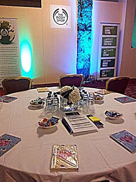 A simple cube arrangement was required for the presentation as there would be a great deal of interaction between the presentors and the audience. The arrangements were just three hydrangers in white with dark green foliage to enable them to stand out amongst the colourful array of items on the tables that would be added to by the delegates. These arrangements also had to be robust as they were then used at Alfresco's restaurant for the special meal the following evening overlooking the West pier and Brightons famous beach. Went like a dream and the client was extremely happy.Read More