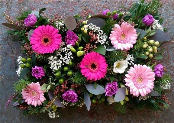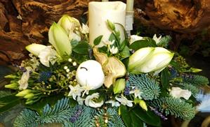 Wreaths, sprays, and posies made with seasonal flowers and natural foliage.