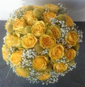 My favourite wedding bouquet this year ! Just has three flower varieties, gypsophila, yellow roses and craspedia. Simple but very effective. Read More
