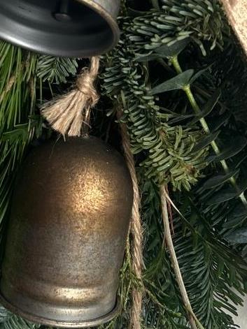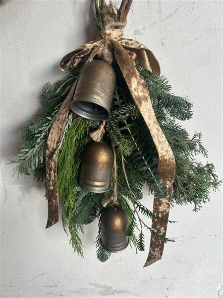 A traditional, decorative piece to celebrate the season, and a great alternative to a wreath. Our swag features luscious greenery including fir branches, and bells for a full display. Detailed with a large, gold-velvet ribbon, it can be hung on doors, walls, or can even be placed on a table to use as a centrepiece.