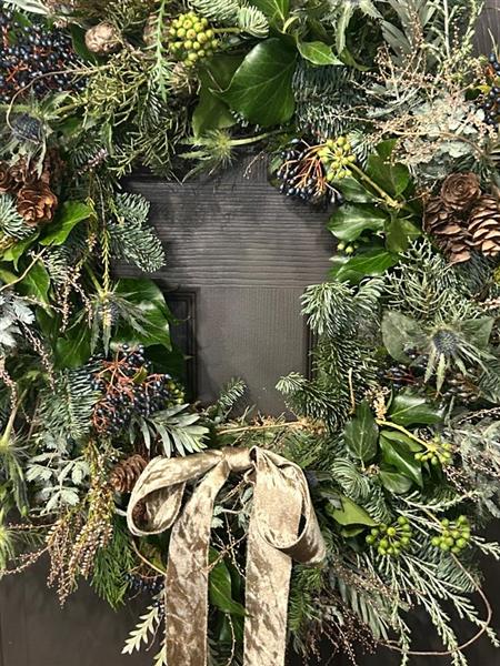 Our most traditional wreath is made on an eco-friendly wire and moss frame, filled with seasonal festive foliage such as blue spruce and pine fir.