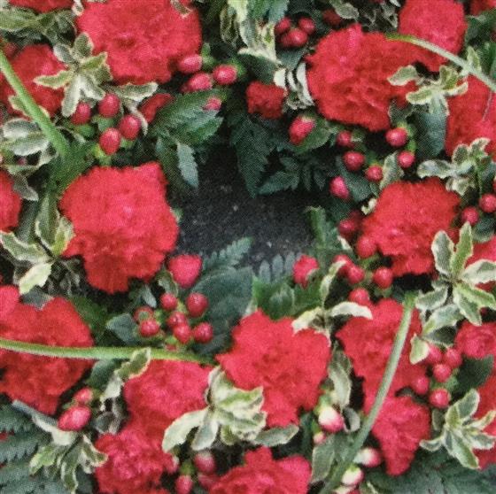 Funeral Flowers - Red Carnation Wreath zoom 2Funeral Flowers - Red Carnation Wreath zoom 3