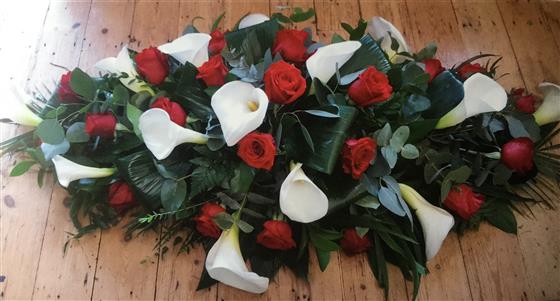 Funeral Flowers - Red Rose and Cala Lily Casket Spray