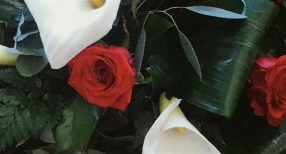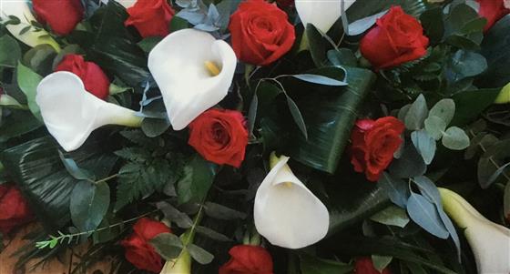 Funeral Flowers - Red Rose and Cala Lily Casket Spray 1