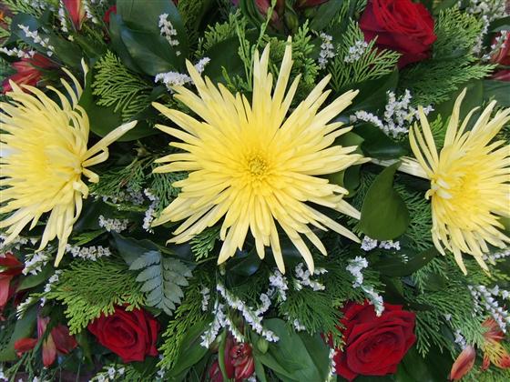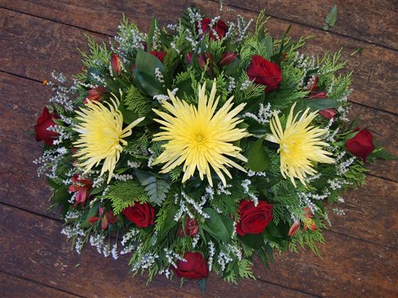Funeral Flowers -  A Single ended red & yellow spray  zoom 2Funeral Flowers -  A Single ended red & yellow spray  zoom 3