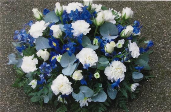 Funeral Flowers Gentle White and Blue Posy
