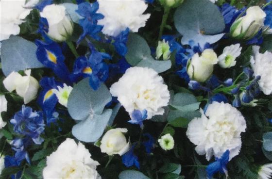 Funeral Flowers Gentle White and Blue Posy 3