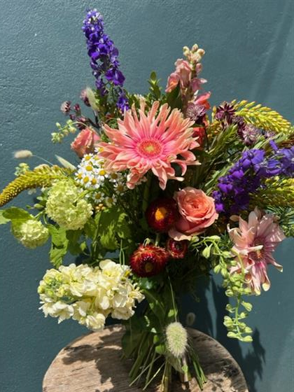 An eclectic mix of summer flowers expertly hand tied.