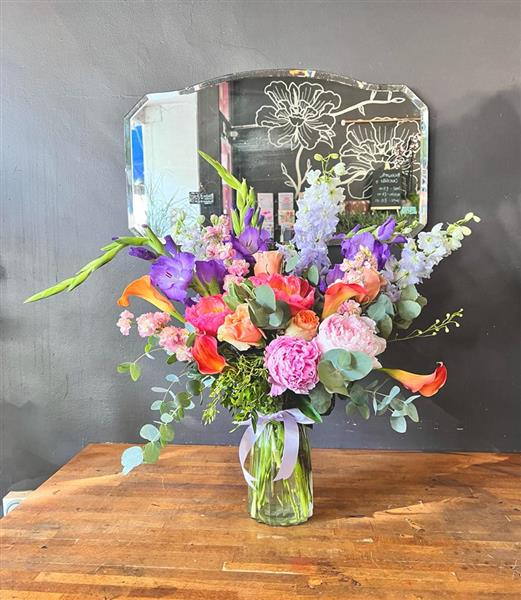 Please note that due to the seasonal market availability of flowers it may be necessary to vary individual stems and stem count from those shown. Our skilled florists may substitute flowers for one similar in style, quality and value. Where our designs include a sundry item like a vase or basket it may not always be possible to include the exact item as displayed. If such an occasion arises we will make every effort to replace the item with a suitable alternative.