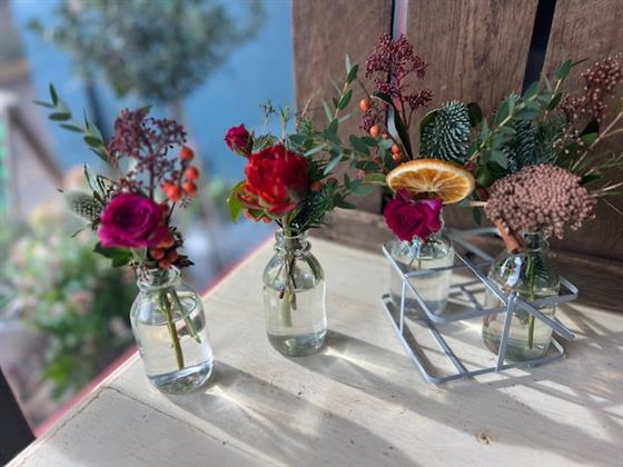 Festive milk bottles, perfect for a Christmas gift. Standard set includes 4 milk bottles and large includes 6 milk bottles.